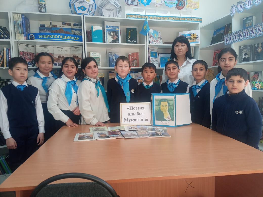 «Поэзия алыбы – Мұқағали» атты кітап көрмесіне шолу өткізіп, ақынның өлеңдері мен прозалық шығармалары насихатталды.