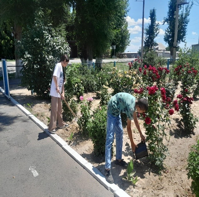 Жетісу облысы Қаратал ауданы Оян ауылындағы МДШО бар орта мектебінің жаз мезгіліндегі бос уақыттарын тиімді пайдалану бойынша оқушылармен Мектеп ауласындағы гүлдерге су құю. Оқушыларды өсімдіктерді күтуге, уақытылы қарап, суаруға тәрбиелу;