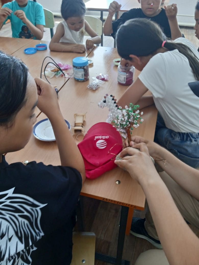 Жетісу облысы Қаратал ауданы Оян ауылындағы МДШО бар орта мектебінде оқушылардың жаз мезгіліндегі бос уақыттарын тиімді пайдалану бойынша "Балдәурен" лагерінде 24.07.2025 ж «Шебер қолдар»әртүрлі заттармен бұймдар жасау.