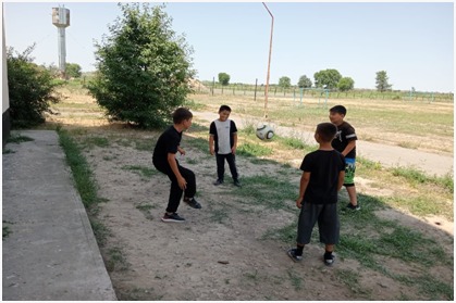 – Ойын барысында: жүгіру, жүру, иілу, секіру, допты көтеріп беру, көздеп нысанаға тигізу, лақтыру т.б, жатады. Баланың ермегі, ойыншығы, сүйікті ойыны болған. «Доппен ойын»