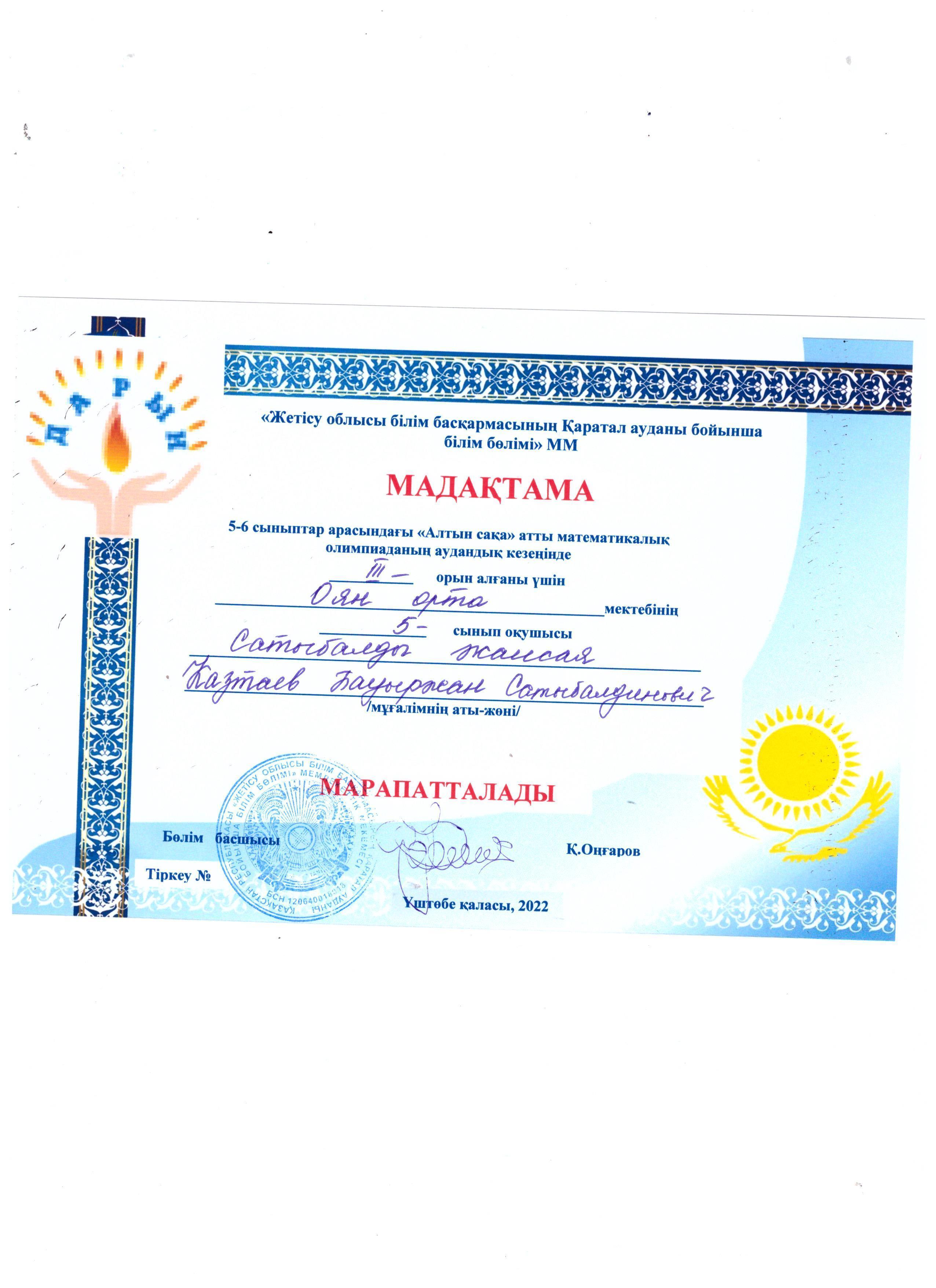10 февраль 2023 0 1 2 3 4 5 5-6 сыныптар арасындағы "Алтын сақа" атты математикалық олимпиаданың аудандық кезеңінің жеңімпаздары