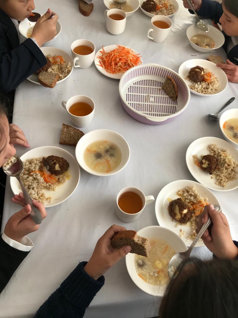 Тегін ыстық тамақпен қамтылған оқушылардың тамақтануы