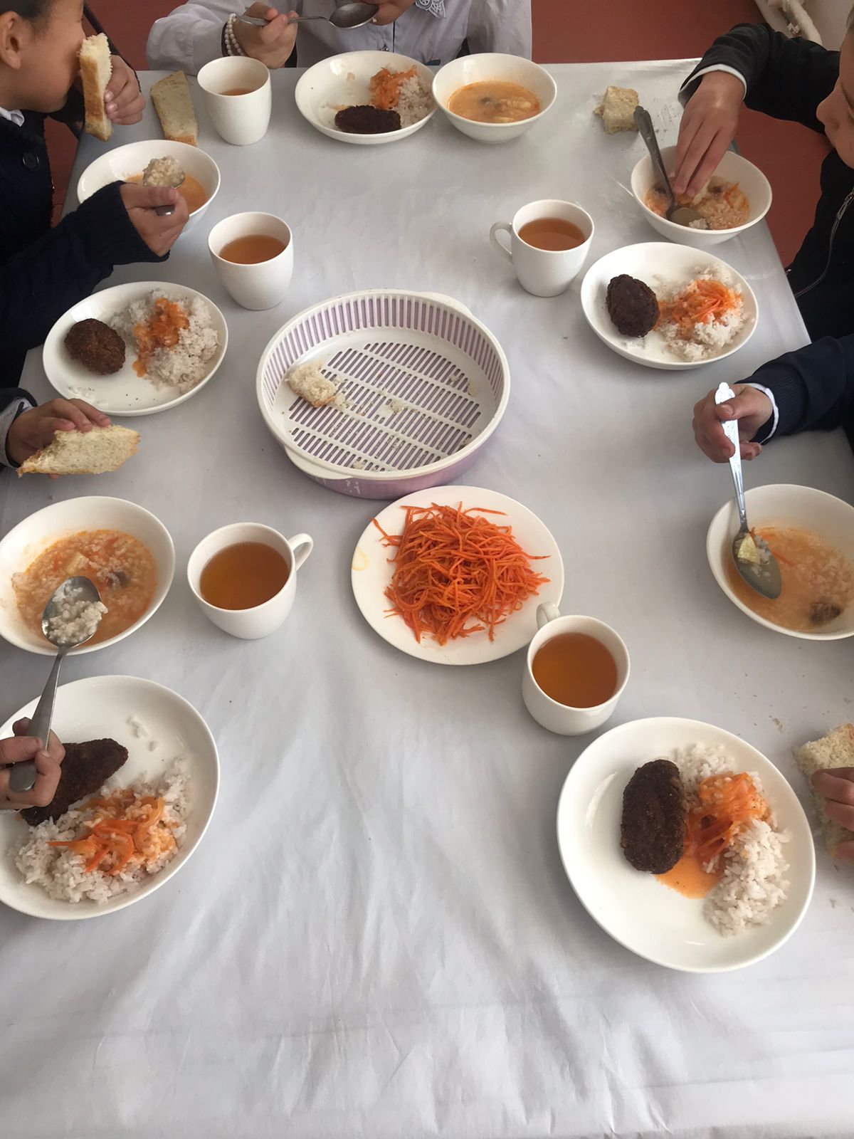 Тегін ыстық тамақпен қамтылған оқушылардың тамақтануы