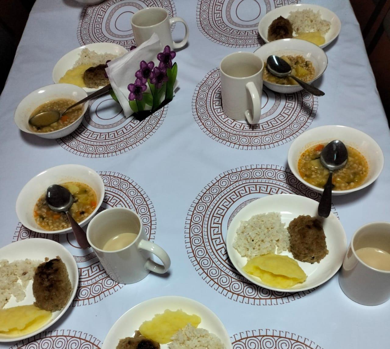 Ыстық тамақпен қамтылған оқушылардың тамақтануы