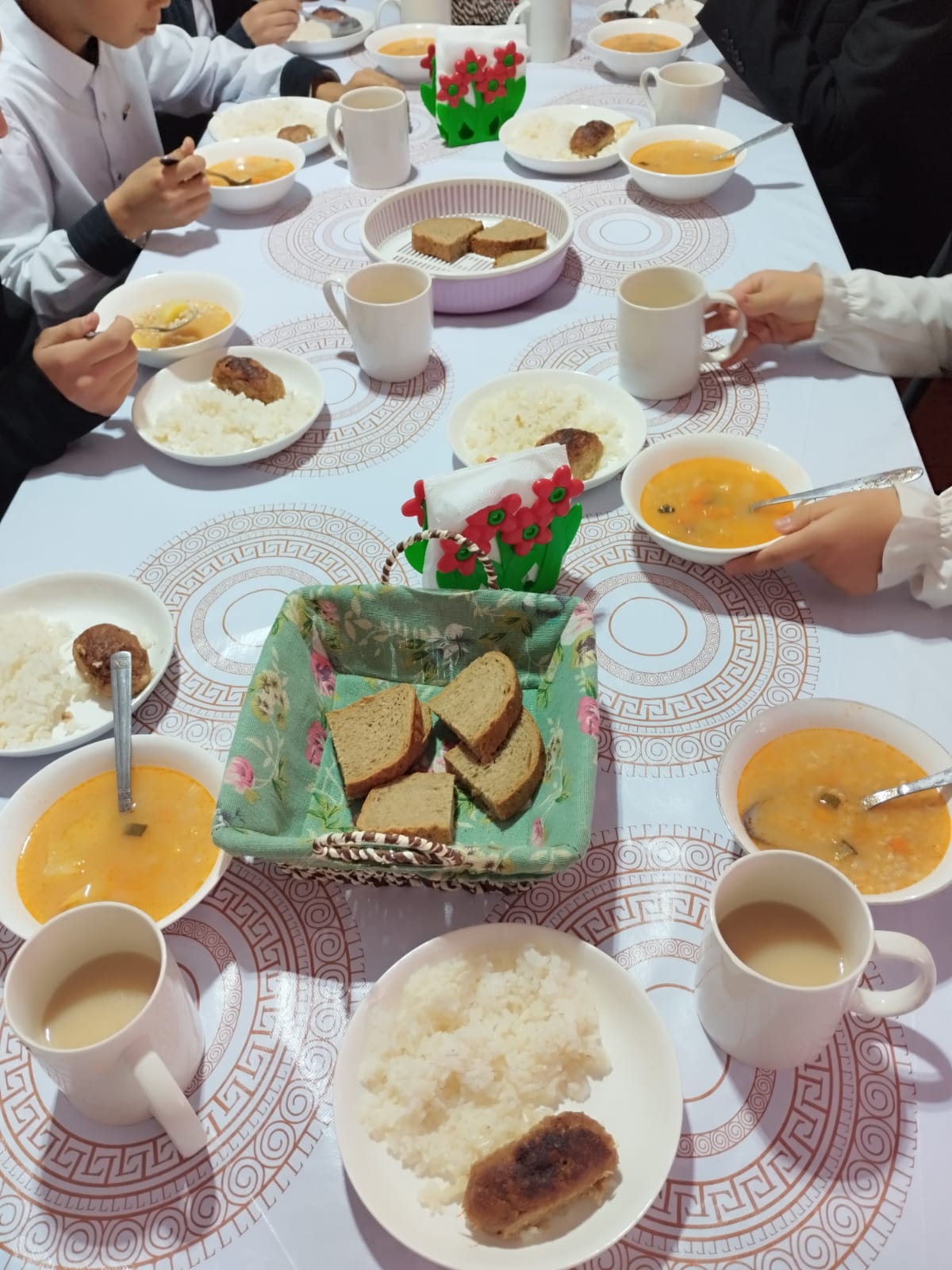 Ыстық тамақпен қамтылған оқушылардың тамақтануы » Оян негізгі мектебі