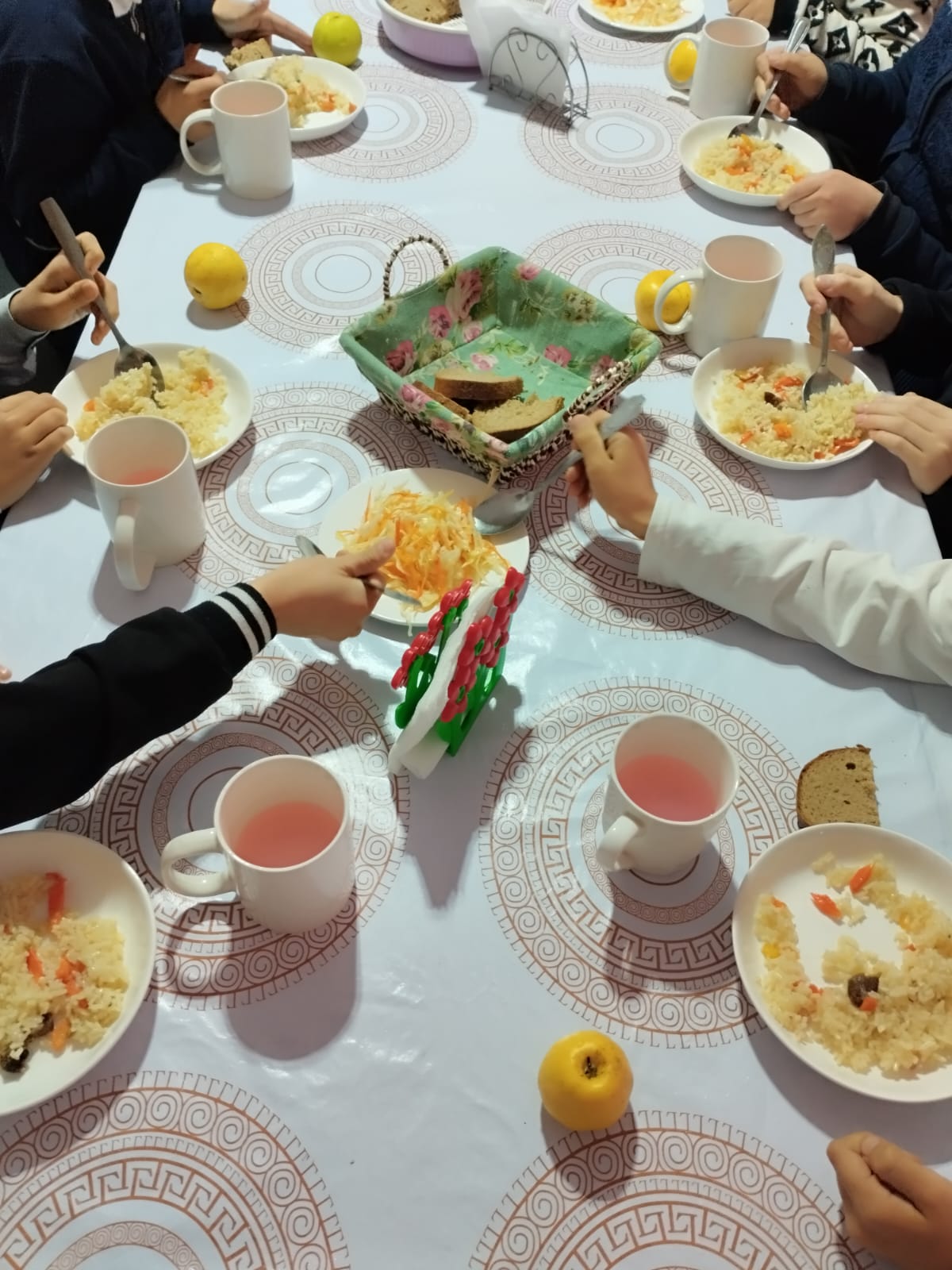 Тегін ыстық тамақпен қамтылған оқушылардың тамақтануы