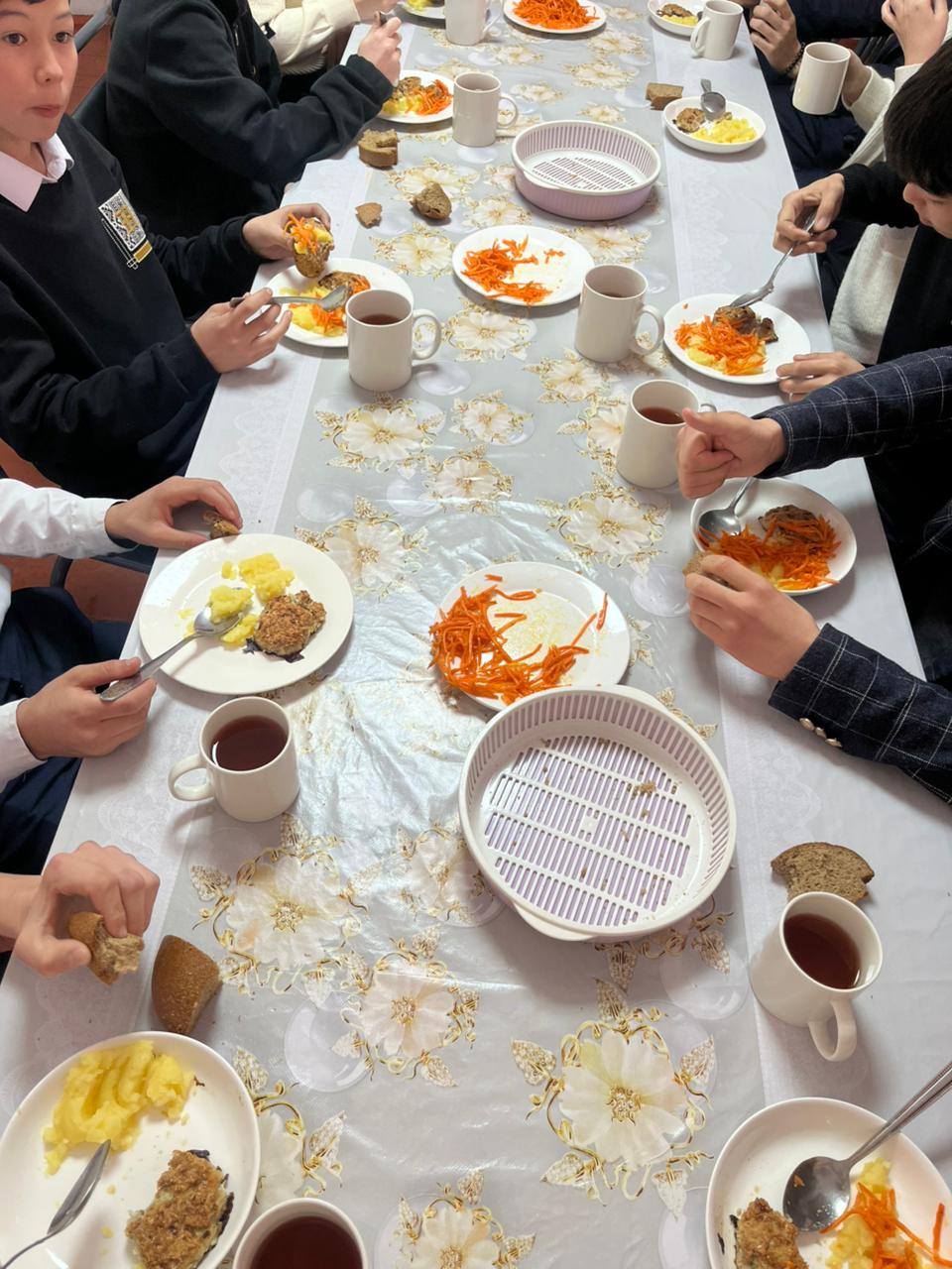 Тегін ыстық тамақпен қамтылған оқушылардың тамақтануы