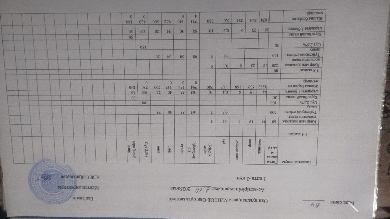 Жетісу облысы Қаратал ауданы "Оян ауылындағы мектепке дейінгі шағын орталығы бар орта мектебі" коммуналдық мемлекеттік мекемесінің жалпыға бірдей білім беру қорынынан тегін ыстық тамақпен қамтылған оқушылардың тамақтануы