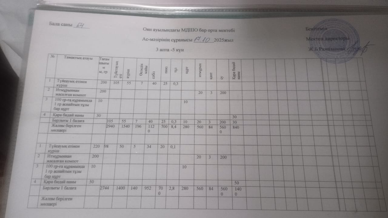 Жетісу облысы Қаратал ауданы "Оян ауылындағы мектепке дейінгі шағын орталығы бар орта мектебі" коммуналдық мемлекеттік мекемесінің жалпыға бірдей білім беру қорынынан тегін ыстық тамақпен қамтылған оқушылардың тамақтануы