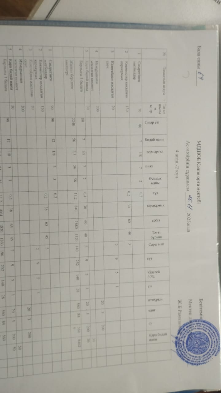 Жетісу облысы Қаратал ауданы "Оян ауылындағы мектепке дейінгі шағын орталығы бар орта мектебі" коммуналдық мемлекеттік мекемесінің жалпыға бірдей білім беру қорынынан тегін ыстық тамақпен қамтылған оқушылардың тамақтануы.