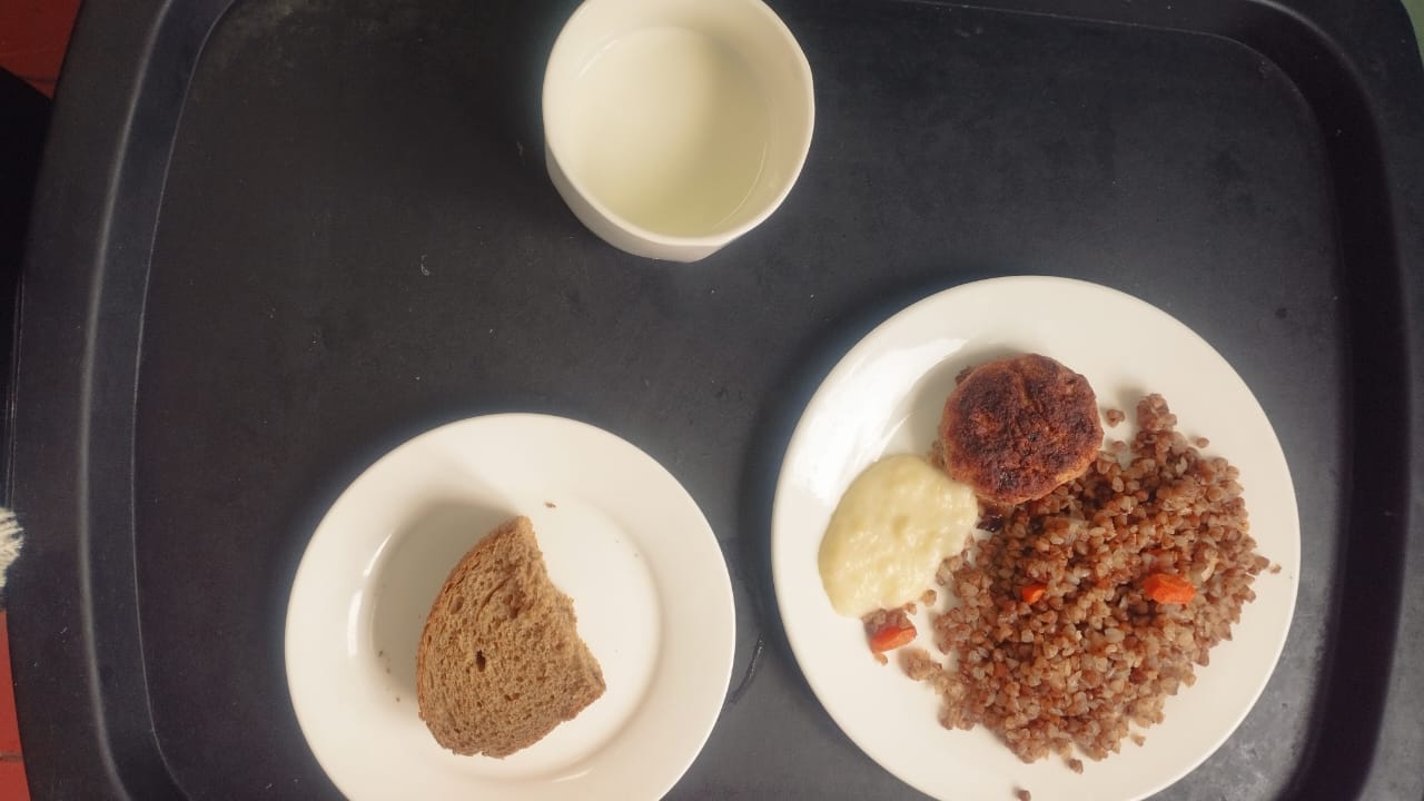 Тегін ыстық тамақпен қамтылған оқушылардың тамақтануы.