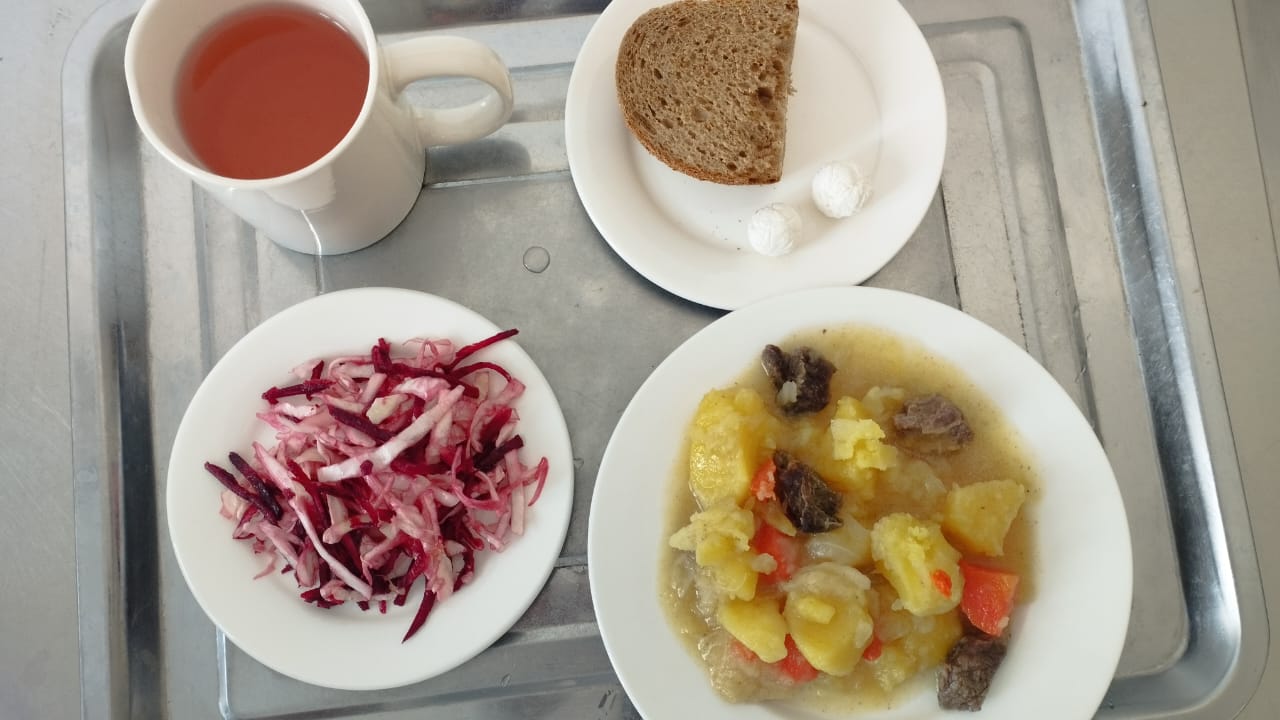 Тегін ыстық тамақпен қамтылған оқушылардың тамақтануы.