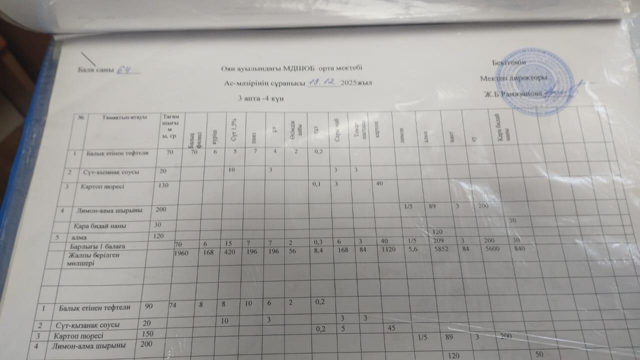 Жетісу облысы Қаратал ауданы "Оян ауылындағы мектепке дейінгі шағын орталығы бар орта мектебі" коммуналдық мемлекеттік мекемесінің жалпыға бірдей білім беру қорынынан тегін ыстық тамақпен қамтылған оқушылардың тамақтануы.