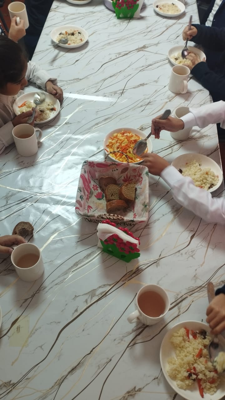 Жетісу облысы Қаратал ауданы "Оян ауылындағы мектепке дейінгі шағын орталығы бар орта мектебі" коммуналдық мемлекеттік мекемесінің жалпыға бірдей білім беру қорынынан тегін ыстық тамақпен қамтылған оқушылардың тамақтануы.