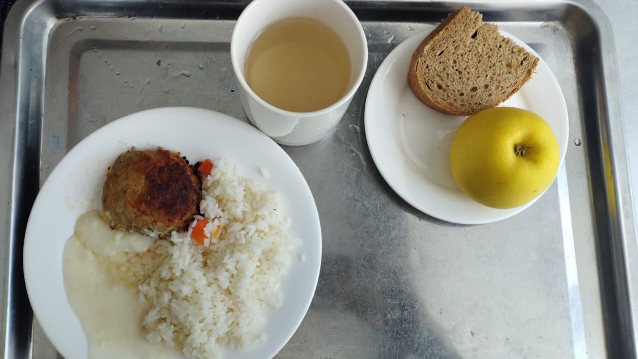 Тегін ыстық тамақпен қамтылған оқушылардың тамақтануы.