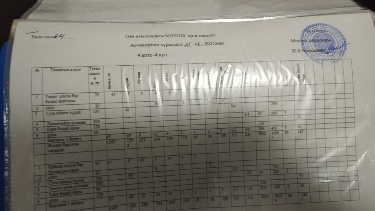 Жетісу облысы Қаратал ауданы "Оян ауылындағы мектепке дейінгі шағын орталығы бар орта мектебі" коммуналдық мемлекеттік мекемесінің жалпыға бірдей білім беру қорынынан тегін ыстық тамақпен қамтылған оқушылардың тамақтануы.