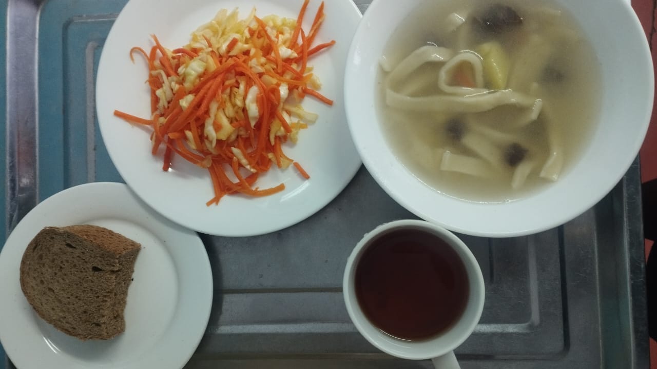 Тегін ыстық тамақпен қамтылған оқушылардың тамақтануы.