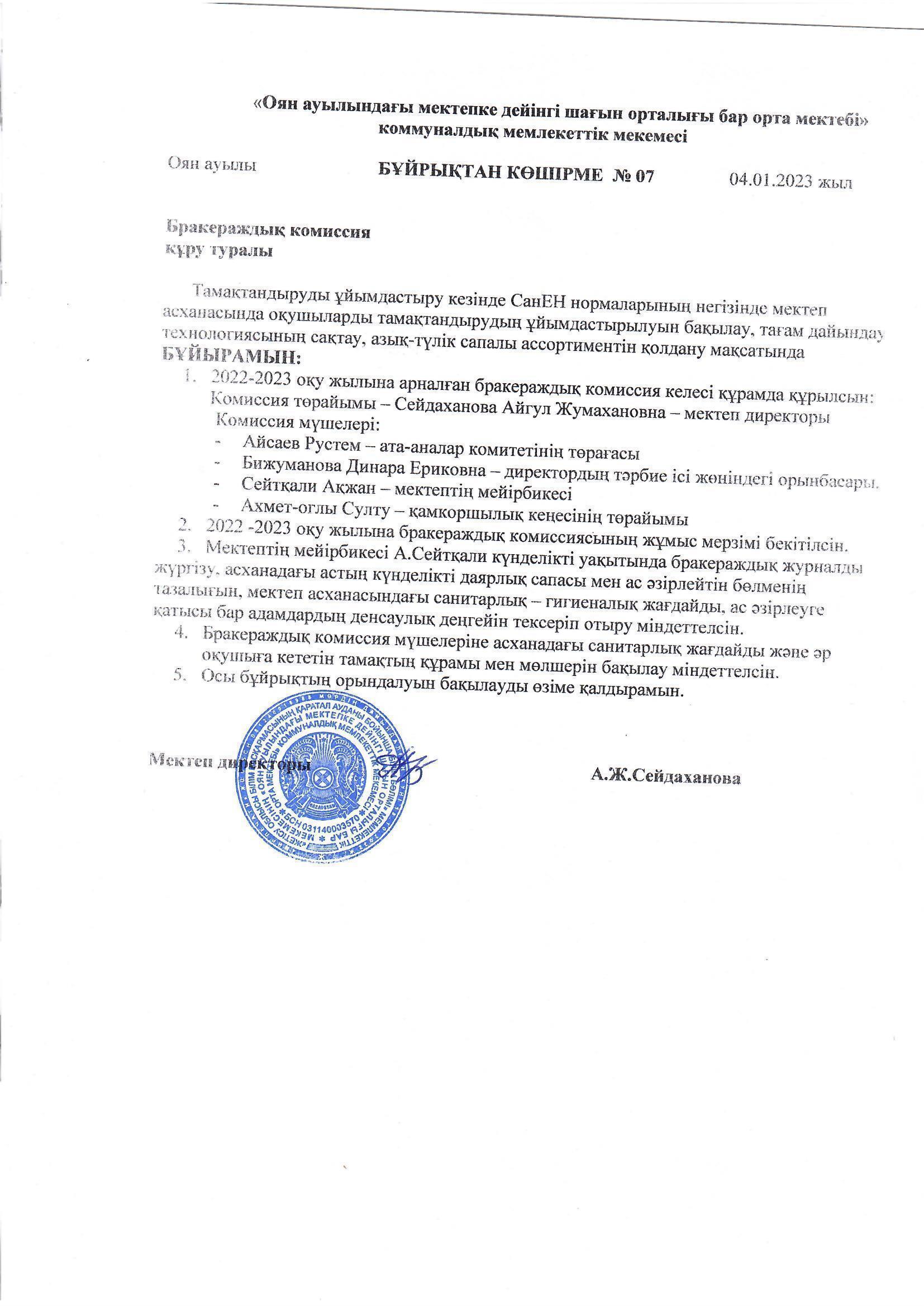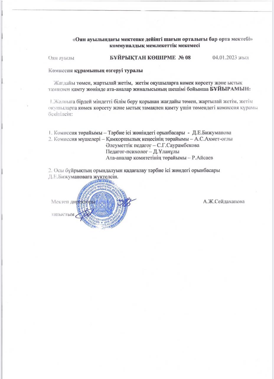 Оян ауылындағы МДШО бар орта мектебі "Мектептік тамақтандыру" айдары туралы ақпараты